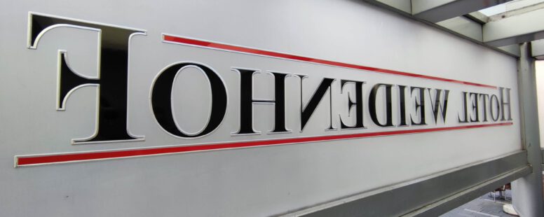 Werbeanlagen gibt es in den unterschiedlichsten Ausprägungen. Eine durchaus nicht seltene, aber wohl oft eher unbekannte, ist die des Vordachs. Das Hotel Weidenhof in der Maximilianstraße im Herzen von Regensburg nutzt ein Solches, um seine Gäste zu empfangen.